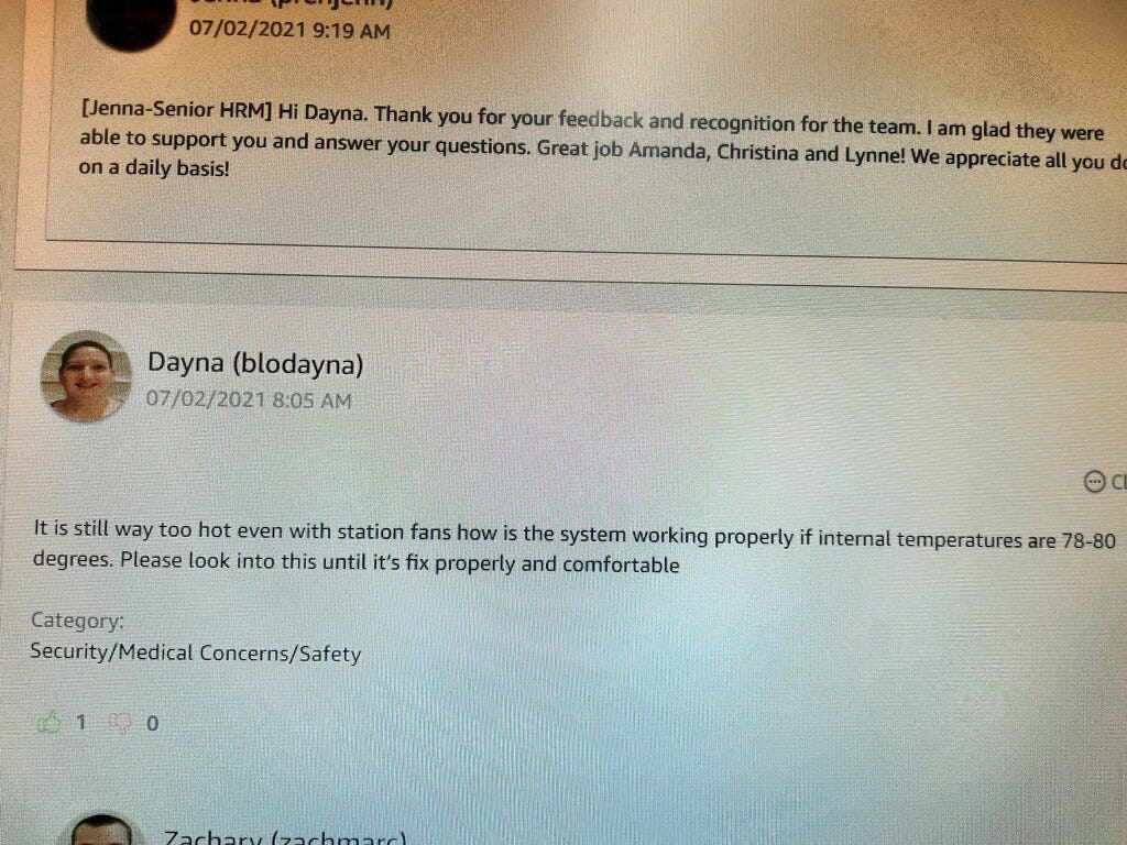 “It is still way too hot even with station fans how is the system working properly if internal temperatures are 78-80 degrees,” Dayna wrote. “Please look into this until it’s fixed properly and comfortable.”