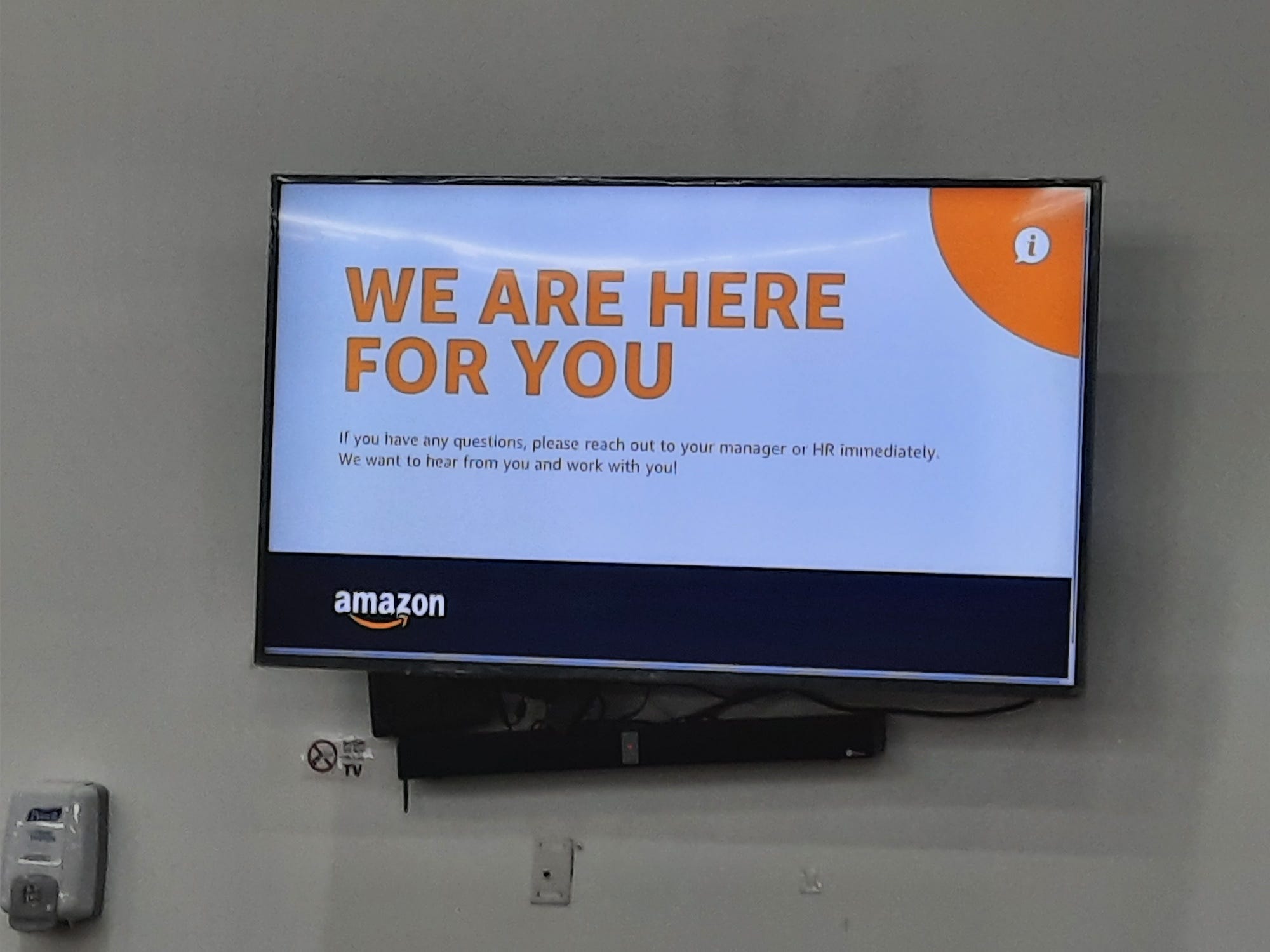 Other messaging tells workers “We are here for you” and urges them to reach out to your manager of HR immediately. “We want to hear from you and work with you.”
