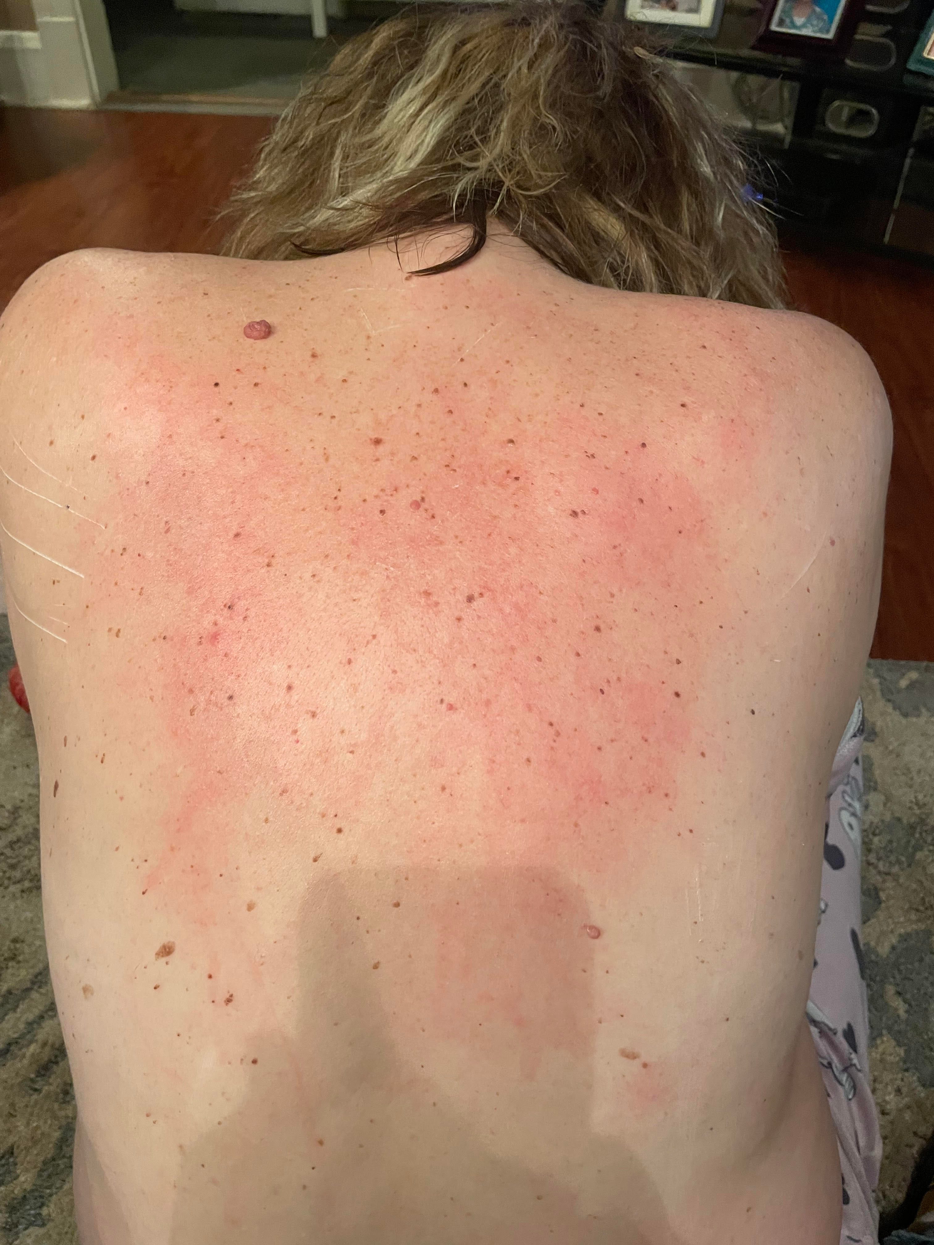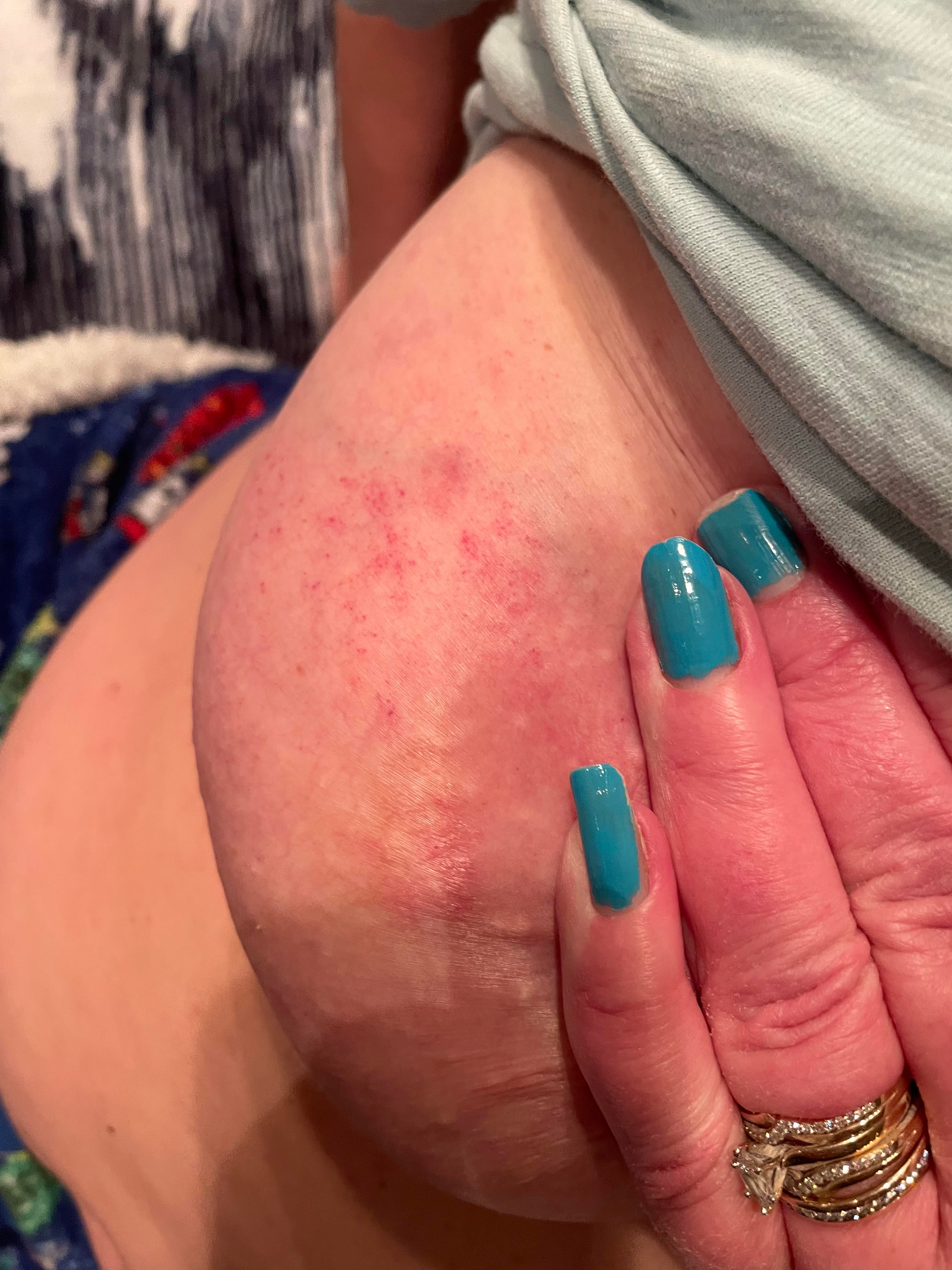 Julie reached said she’s had rashes on different areas of her body, including her back and breasts. While Keith reported rashes on his hands and fingers. Photos they sent Status Coup show bumpy areas, with redness and what appear to be welts and streaks on their skin.