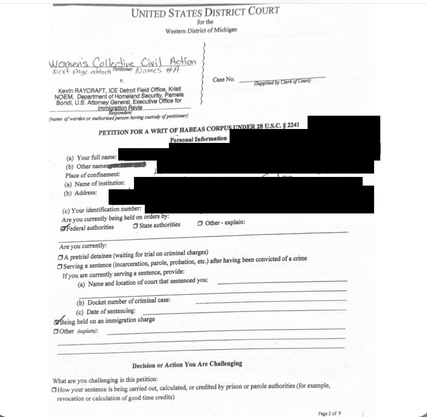 Status Coup has obtained the petition and are posting some of the pages from it below (with redactions to protect prisoner identities).