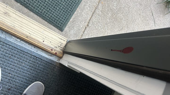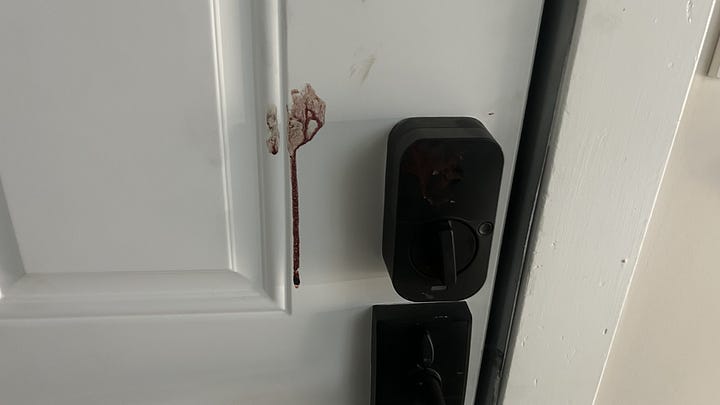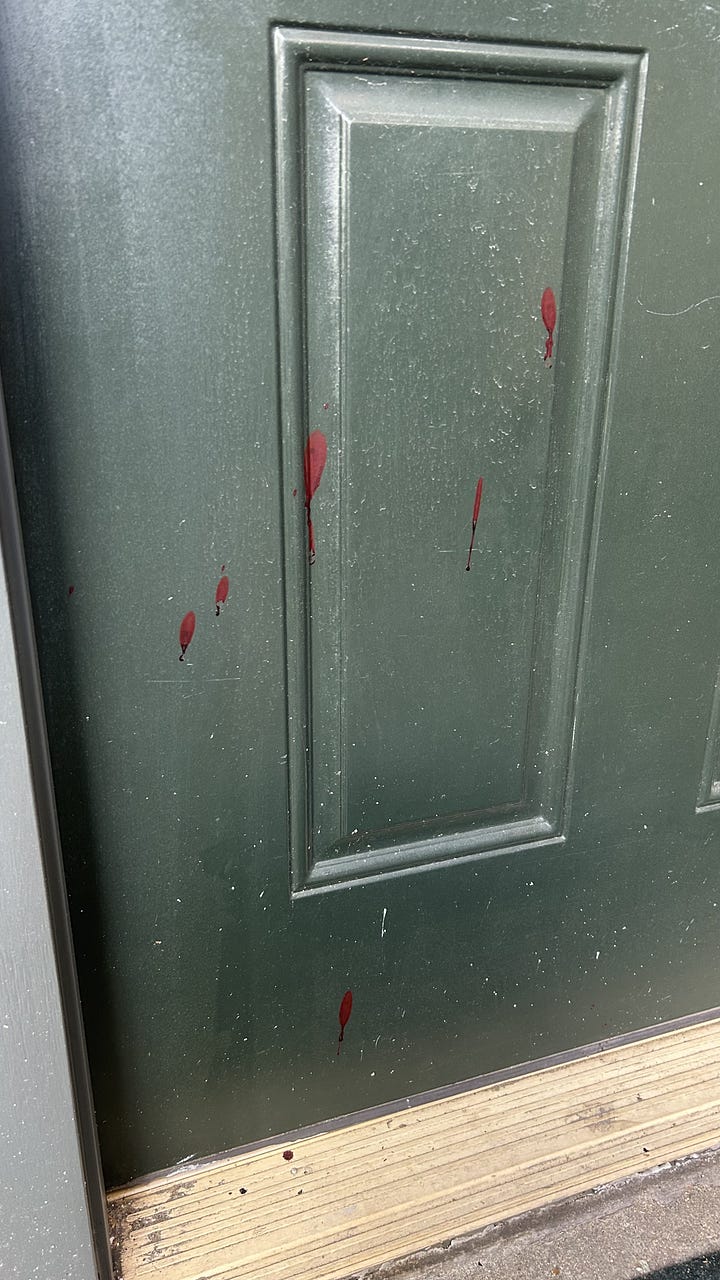 Bleeding, he took refuge inside the home, leaving bloody marks on the backdoor and floor. See above phots JT obtained.