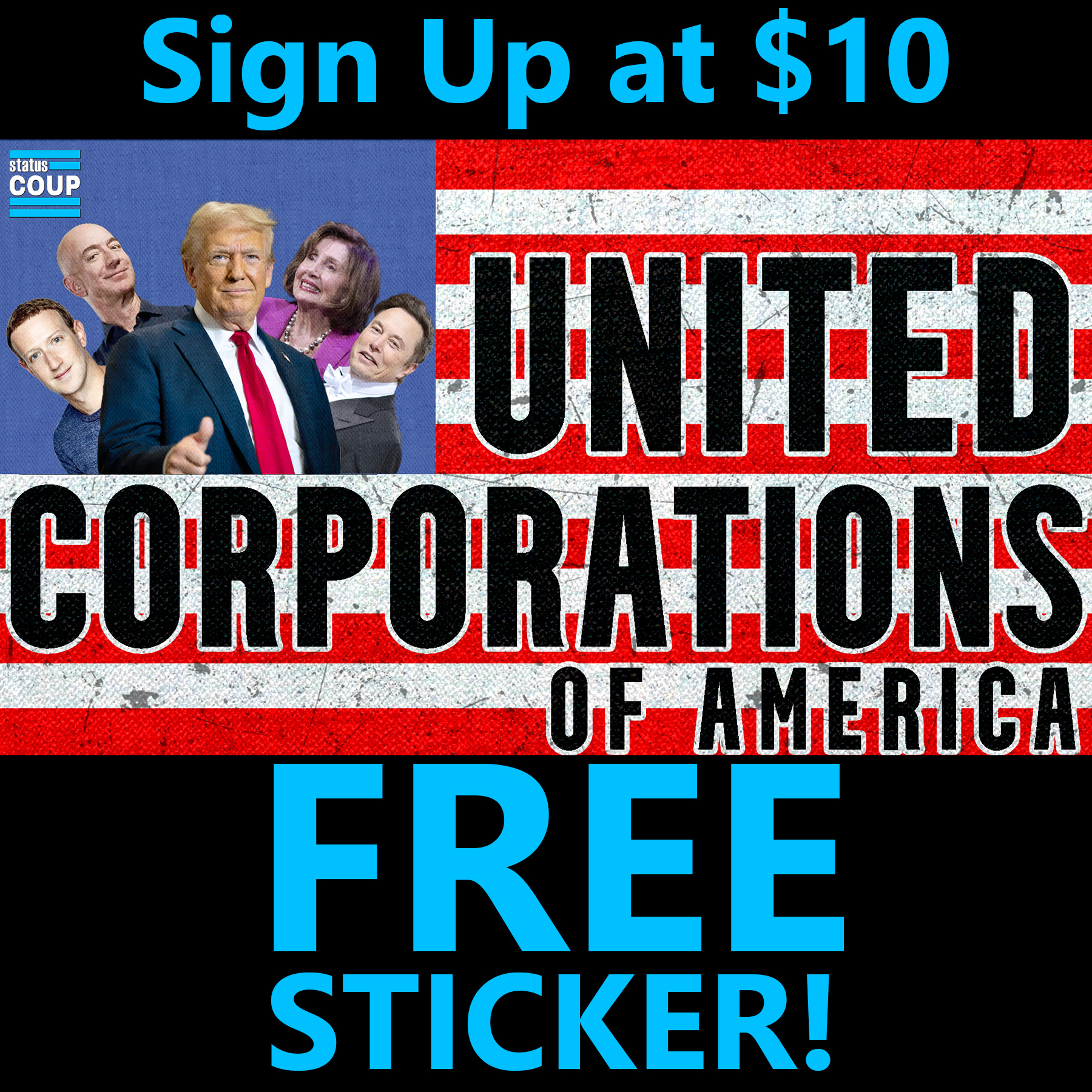 We also had a bunch of viewers sign up as $10 a month members; we’ll be sending those members—and the next 45 viewers who sign up—FREE United Corporations of America Stickers!