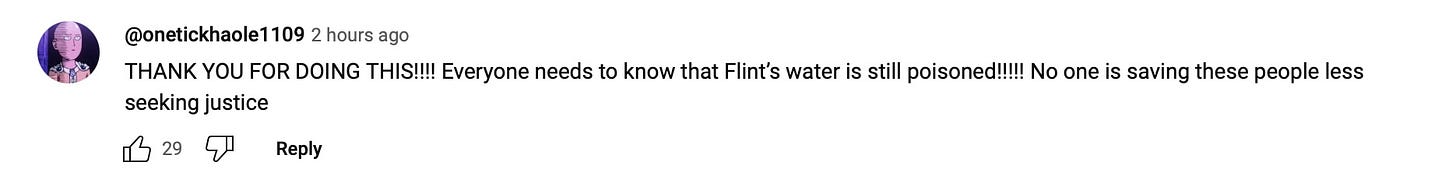 "This deserves an award for best, and most important, documentary of 2024. Everyone in America needs to see this," one viewer wrote about our "Flint Fatigue" documentary about ONGOING water crisis