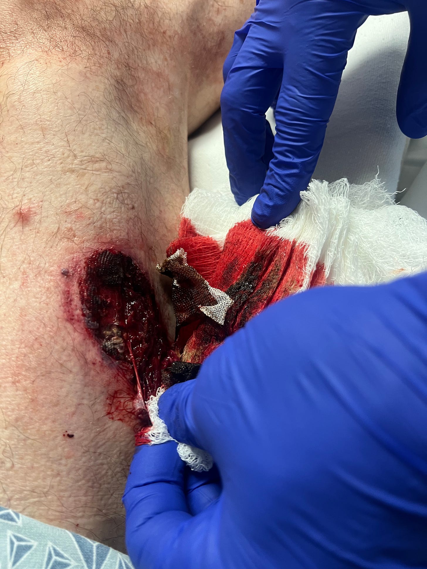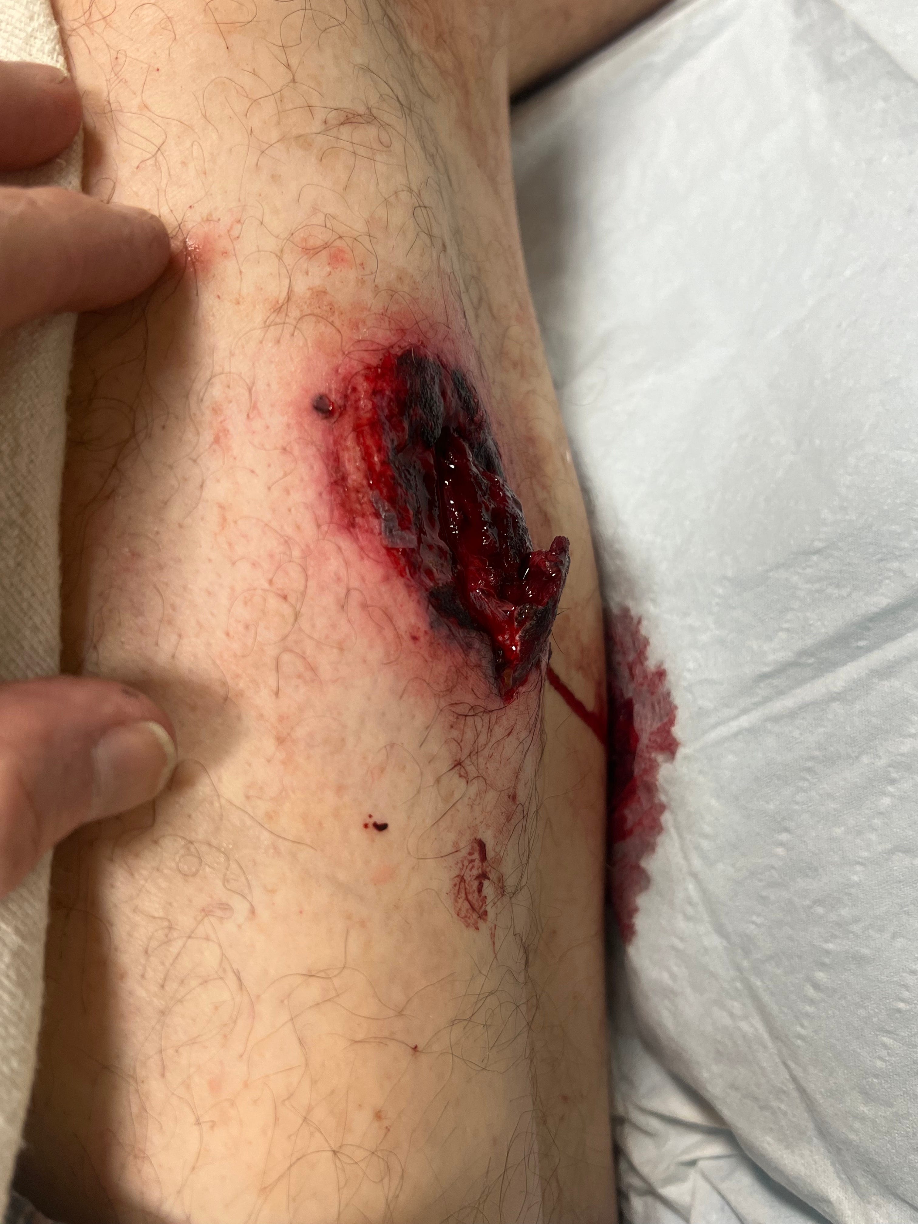 Due to the size of the injury to his leg, emergency surgeons told him they were treating his injury as if it came from a real bullet from a rifle. “In fact, they cut most of my clothes off and checked the hole in my body to see if there was an exit penetration somewhere.”